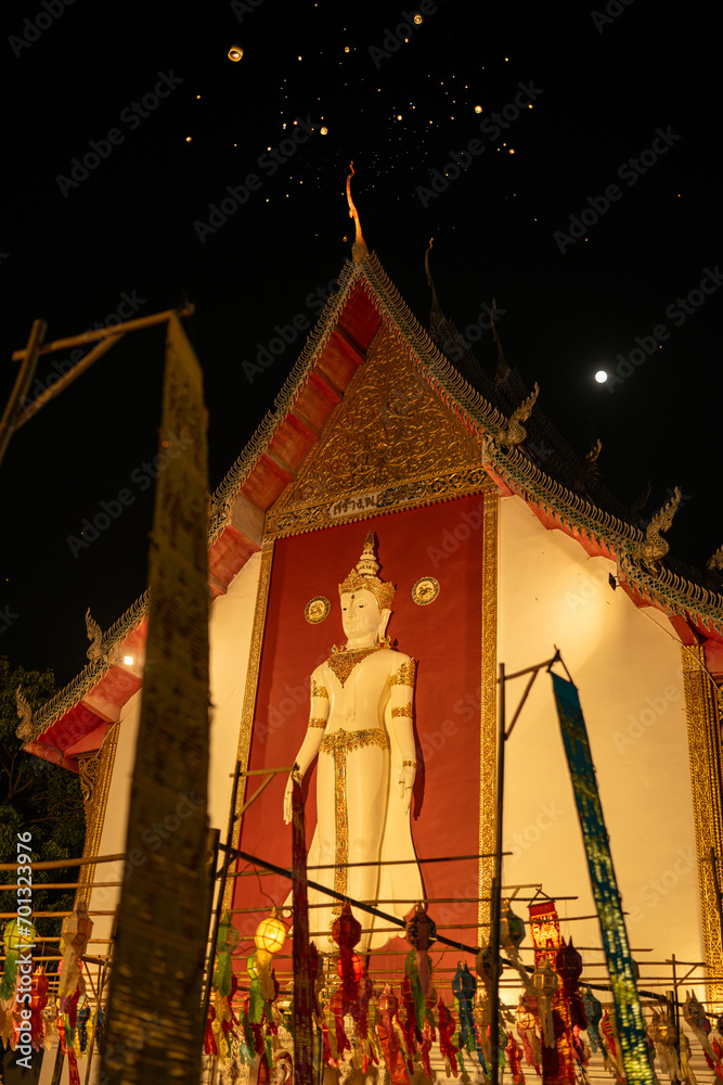 Buddha statue in Wat Si Don Chai at night in Chiangmai, Thailand.