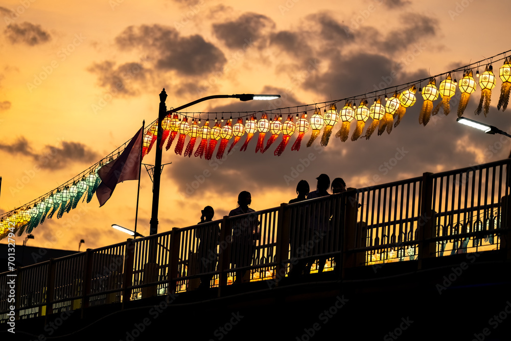 Silhouette of people on Nawara bridge, Chiangmai, Thailand