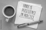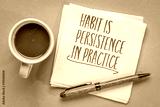 habit is a persistence in practice - inspirational reminder note on napkin, personal development concept