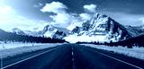 Road with Canadian Rocky Mountain Peaks Covered in Snow. Banff