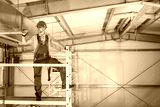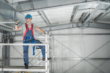 Warehouse Building Specialist Performing Examination Using Scaffolding