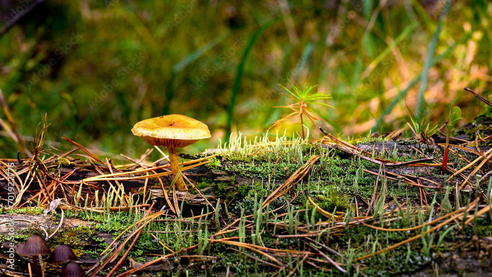 Lactarius mushroom on the coniferous forest floor