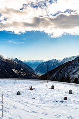 Vview on the mountains and lake, The Bernina express stop station, the Diavolezza Glacier, Switzerland, Europe. Vertical image.