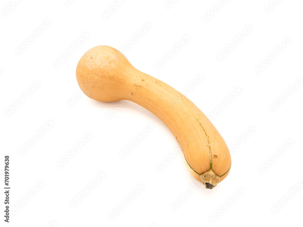 Butternut squash with odd shape of a human organ isolated on a white background.