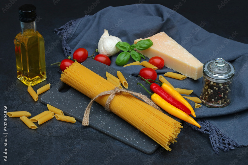 Pasta Zutaten auf auf einem Küchentuch.