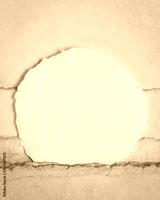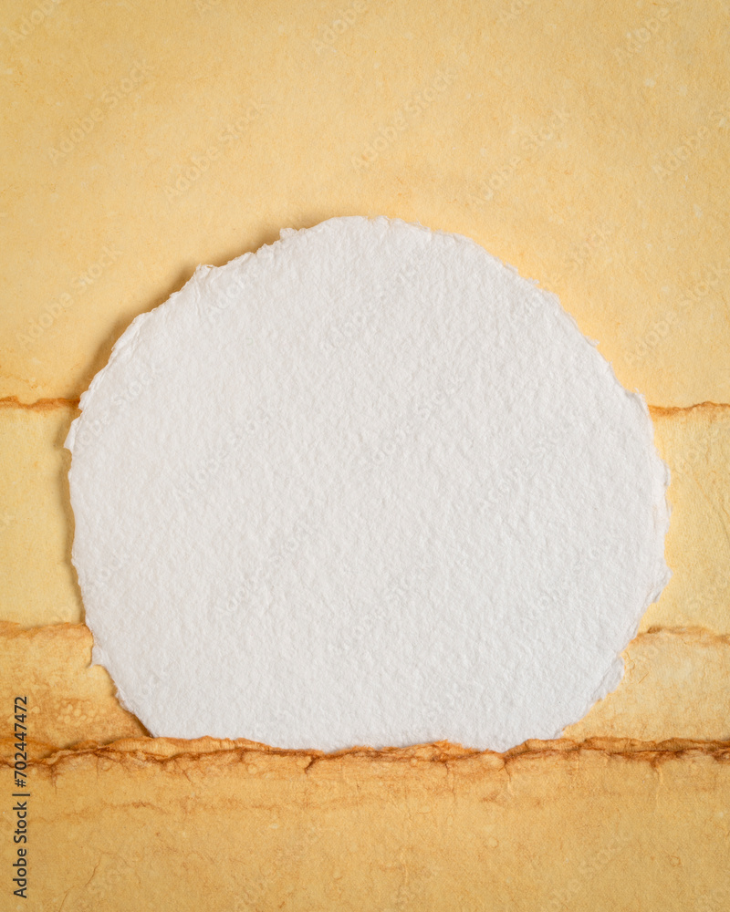 moon or sun rising over abstract landscape, blank circular watercolor paper