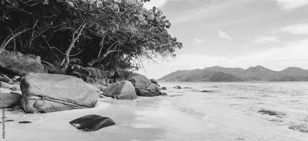 beautiful tropical beach in Thailand. black and white toned image