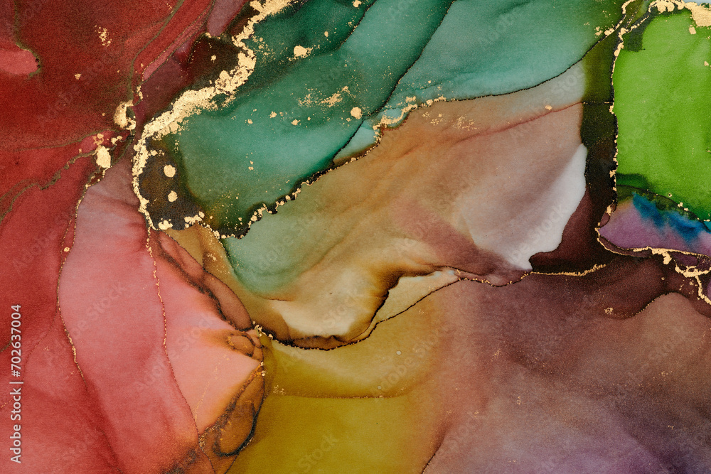 Natural luxury abstract fluid art painting in liquid ink technique. Tender and dreamy wallpaper. Mixture of colors creating transparent waves and golden swirls. For posters, other printed materials