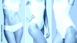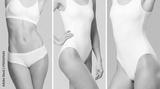Young, fit, happy and beautiful woman in white swimsuit isolated on white background - set collection. Perfect female body. Healthcare, diet, sport and fitness.