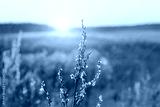 Frosty grass at winter sunset