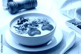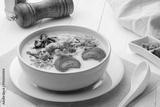 Rice porridge ,Congee with preserved eggs, minced pork, mushroom and ginger in white bowl