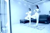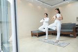 Indian woman Mother and Daughter doing exercise at home ,Mother and Daughter doing yoga poses at home