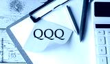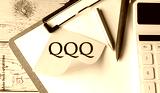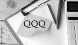 QQQ word on a yellow sticky with calculator, pen and clipboard