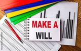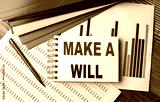 MAKE A WILL text on a notebook with pen, folder on a chart background