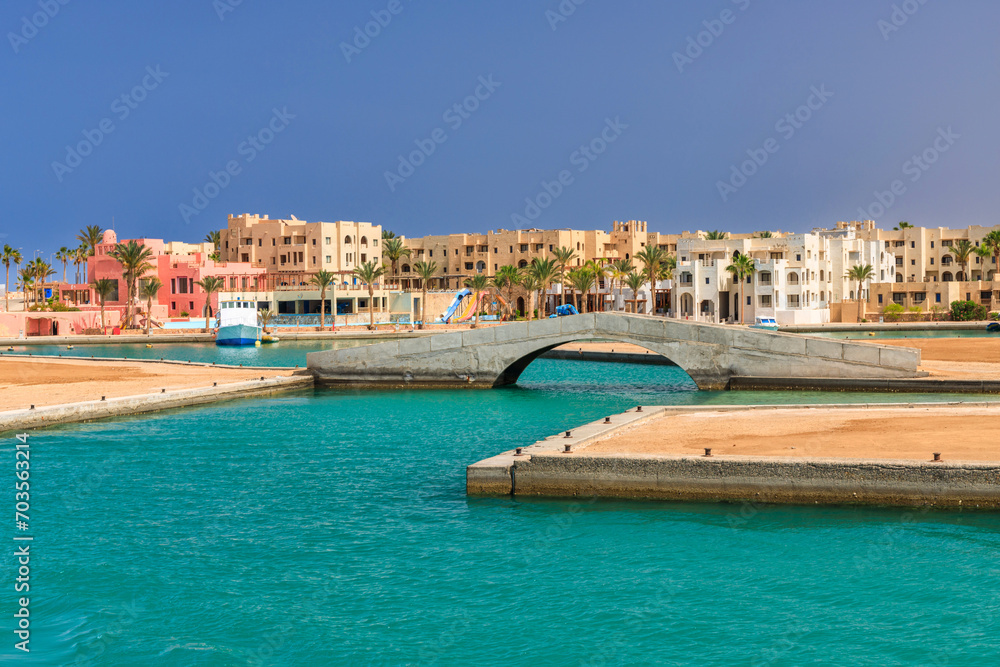 Beautiful scenery of the Red Sea coast at Port Ghalib in Egypt, Africa.