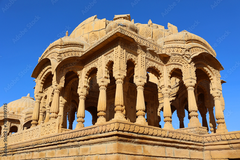 Gadisar lake in the morning. Man-made water reservoir with temples in Jaisalmer. Rajasthan. India