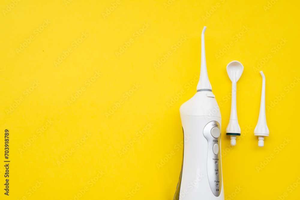 Mouth aerator on a yellow background with different nozzles. View from above