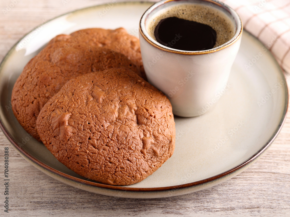 Chocolate cookies with cranberry on plate