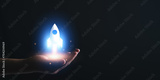 Startup business 2024 concept, Businessman start control rocket 2024 is launch and soar flying up to sky for growth business, Fast startup business 2024 growth to success.