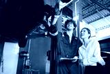 mechanic showing how to fix a car to customer in automobile repair shop