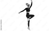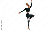 Pretty caucasian young woman in sportswear and towel wrapped around neck talks by phone against transparent background looks at camera smiles. Active people, workout. Women at sport club.