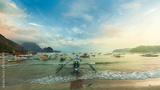 Bangkas at the El Nido Bay by Sunrise, Palawan, Philippines