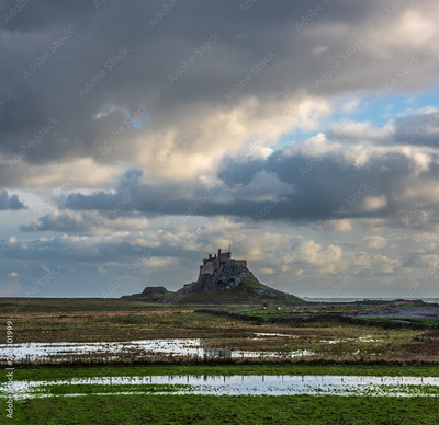 Stunning dramatic landscape image of Lindisfarne, Holy Island in Northumberland England during Winter