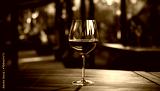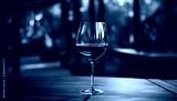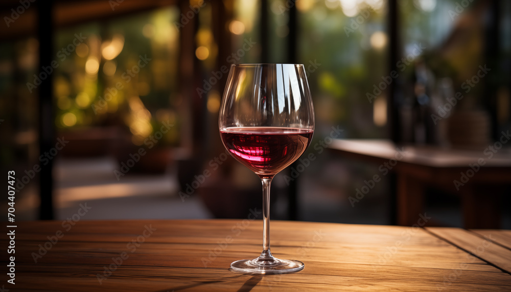 glass of red wine on a wooden table with space for design.