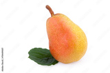 Pear with Leaf in close up