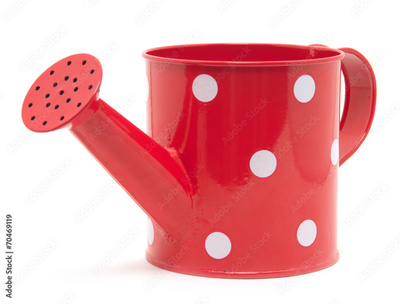 red polka dot watering can