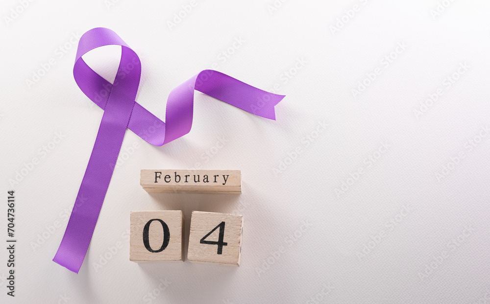 Purple ribbon on white background for supporting World Cancer Day campaign on February 4.