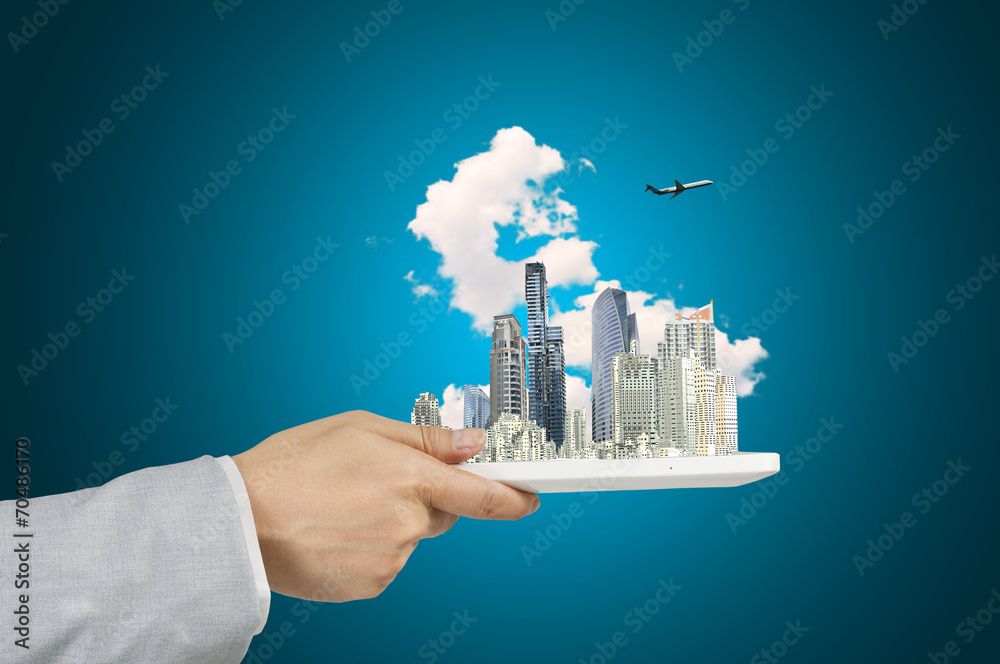 Male Hand Hold tablet with Moderncity