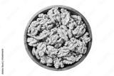 bowl of walnuts isolated on transparent background, top view