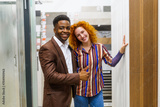 Portrait of young couple who owns small business bath store. Man and woman work in partnership.