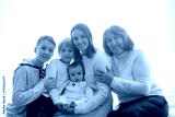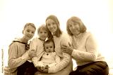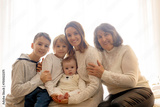 Happy family, newborn baby and older brothers, mom at home on Christmas