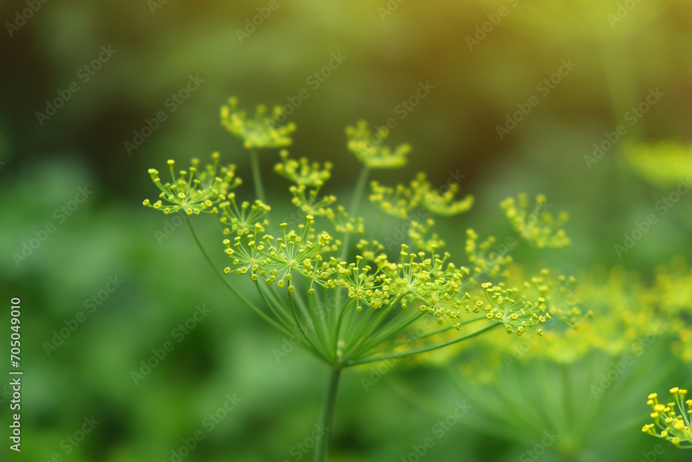 Fresh dill. Anethum graveolens growing on the vegetable bed. Annual herb, family Apiaceae. Growing fresh herbs. Green plants in the garden, ecological agriculture for producing healthy food concept
