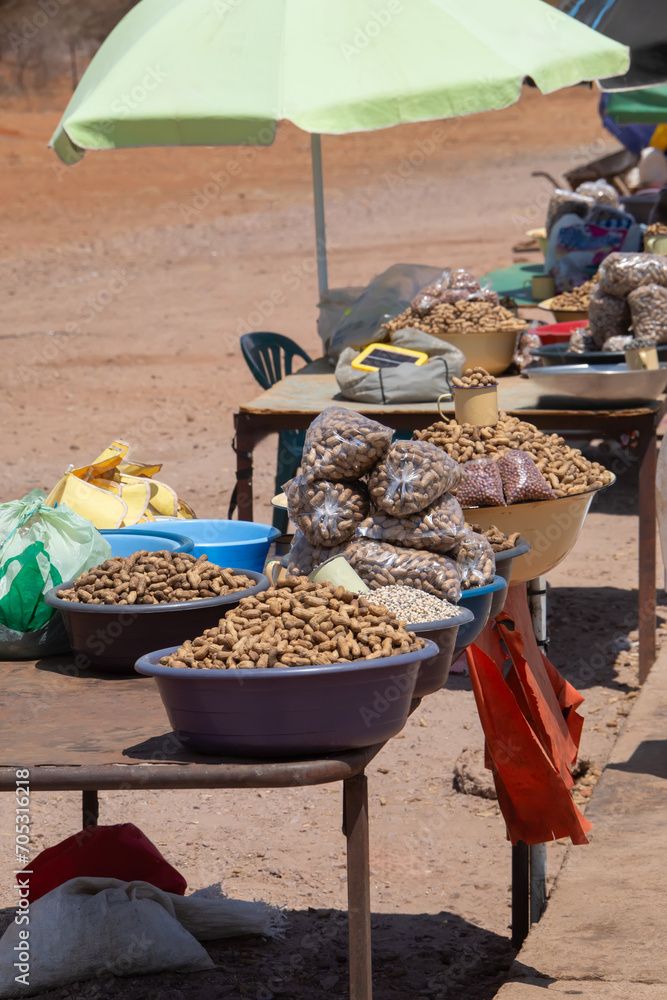 african street vendors selling peanuts and dry beans, entrepreneur at an intersection