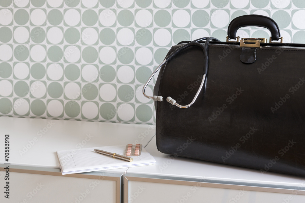 Hausbesuch, Arzttasche mit Stethoskop