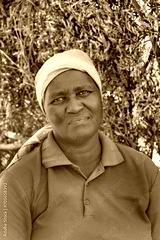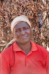 portrait of a village african woman , dry branches background in the outdoors kitchen in the yard