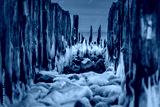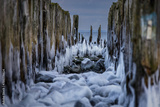 Frozen Baltic Sea beach in Babie Doły at sunset, Gdynia. Poland