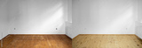 Alter und neu abgeschliffener Holzboden aus Holzdielen