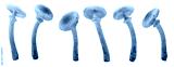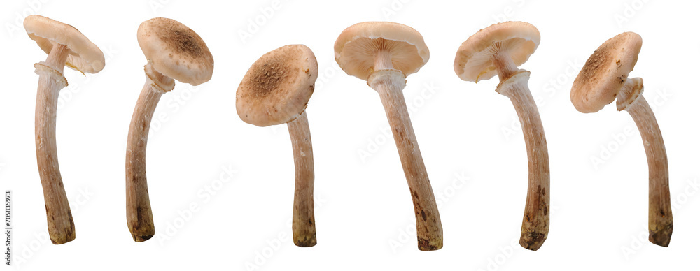 Many honey fungus mushrooms at various angles on white background