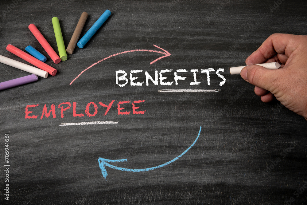 Employee Benefits Concept. Black scratched textured chalkboard background