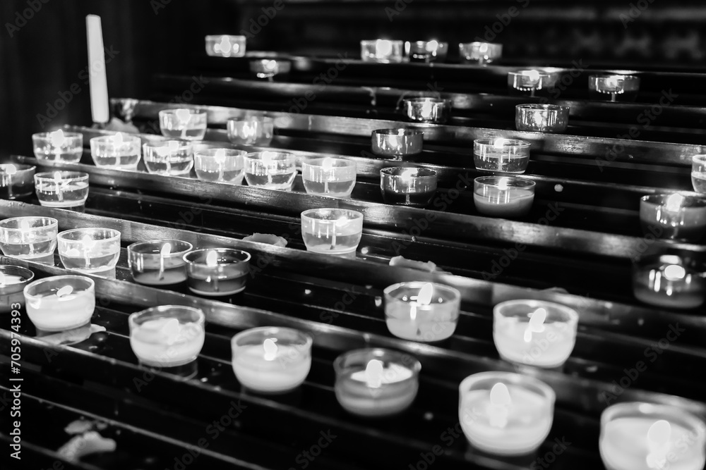 Prayer candles and flames in the church