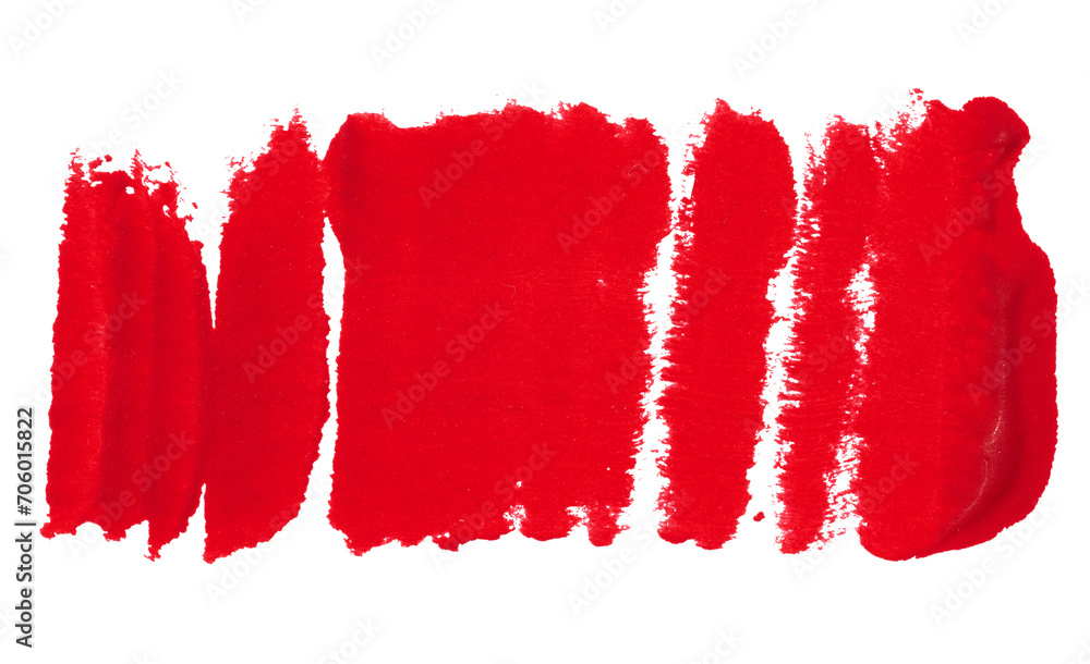 Watercolor brush stroke of red paint, on a white isolated background