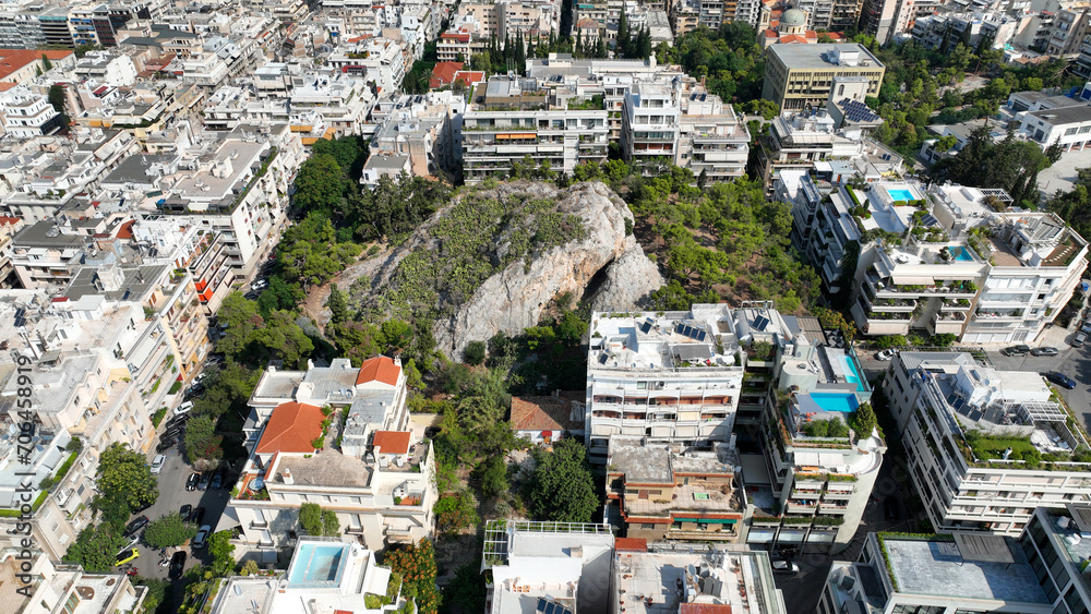Aerial drone photo of Athens historic centre urban dense cityscape a popular tourist attraction, Attica, Greece