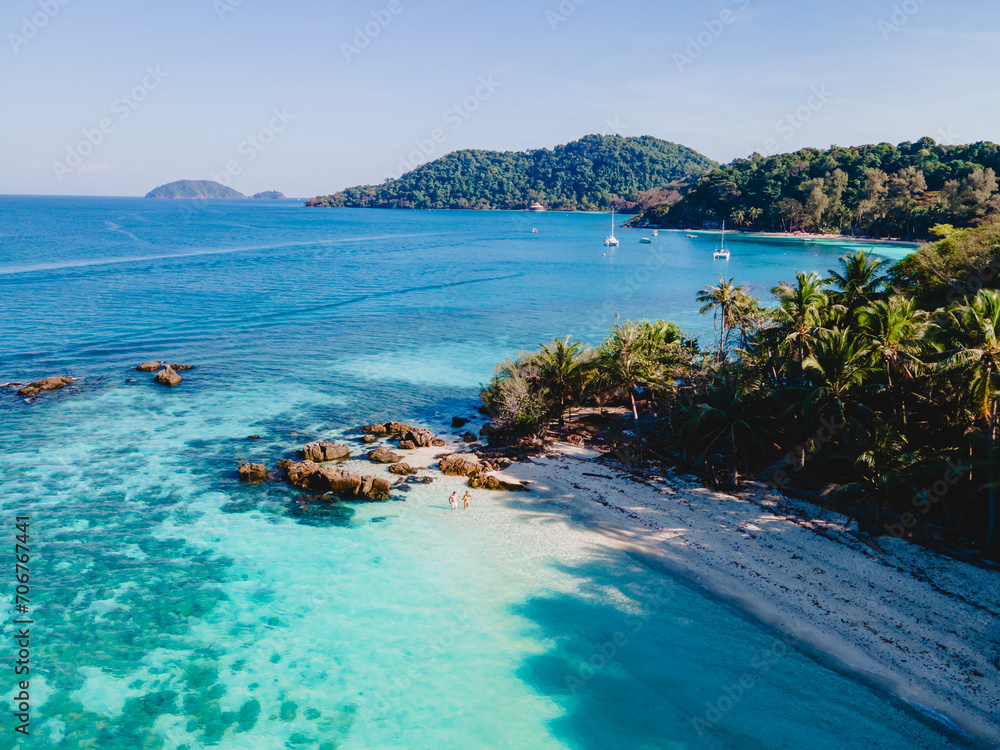 Koh Wai Island Thailand tropical Island near Koh Chang, couple of men and woman on the beach