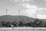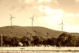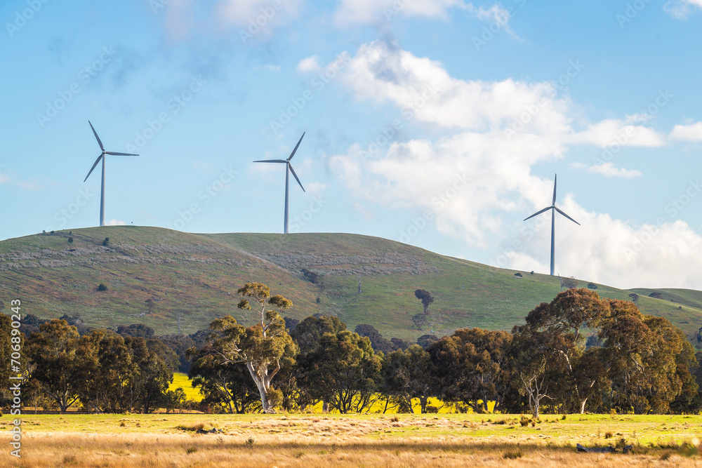Australian sustainable energy wind turbines in rural Victoria viewed from the highway, Australia