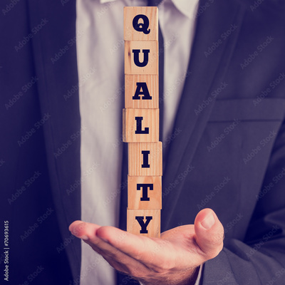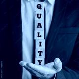 Businessman Holding Letter Blocks Spelling Quality