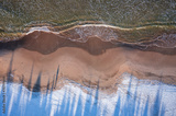 Beautiful scenery of Baltic Sea beach in Sobieszewo at snowy winter, Poland